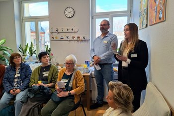 Der neue FLINTA*-Bereich wurde am 10. März 2026 im Rahmen einer kleinen Feier eröffnet. Zur Veranstaltung gekommen waren neben interessierten Kolleg:innen aus anderen Arbeitsbereichen der Regionalen Diakonie und Mitarbeitenden anderer sozialer Organisationen auch einige Unterstützer:innen, die mit Spenden die Neugestaltung des Bereiches ermöglicht hatten: darunter die Unternehmerin Betina Weiler und Vertreter:innen der WiBau GmbH, Heidemarie Utsch von der Alfred Weigle Stiftung und einige private Spender:innen. Ein bedeutender finanzieller Zuschuss für die Renovierung des FLINTA*-Bereichs kam von der Diakoniegemeinschaft Paulinenstift.
