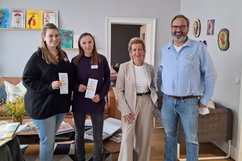 v.l.n.r.: Teestuben-Mitarbeiterinnen Elena Fusca und Stefanie Trautmann, Unternehmerin Betina Weiler, Einrichtungsleiter Matthias Röhrig