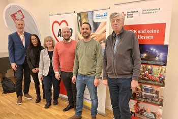 Von links nach rechts: Otto Bachmeier, Ute Schuler (beide Caritasverband Wiesbaden-Rheingau- Taunus), Christa Enders, Bastian Hans (beide AWO Wiesbaden), Marcel Hirsch (Regionale Diakonie Wiesbaden Rheingau-Taunus) und Manfred Stein (DRK).