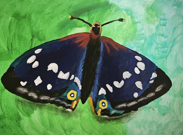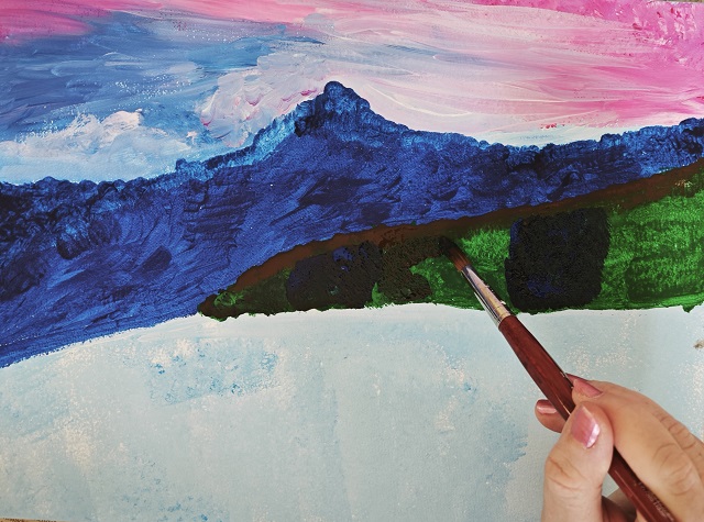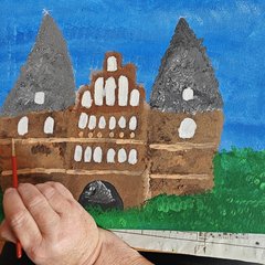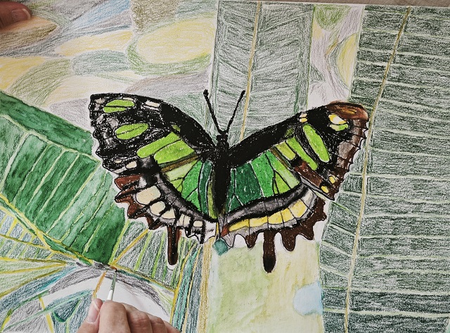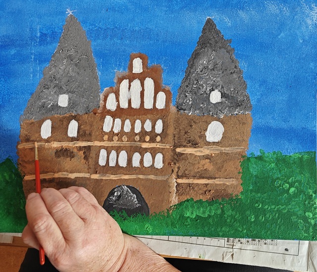 Vordergrund. Mit verschiedenen Farben, Stiften und Materialien können die Teilnehmenden unter Anleitung der Diplom-Kulturpädagogin Ina Ehlers experimentieren und ihren ganz eigenen kreativen Weg gehen. Vorkenntnisse und Begabung sind für die Teilnahme nicht erforderlich.