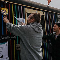 Wir wollen Hauseigentümer dafür begeistern, eine kostenlose Patenschaft für eine dieser individuellen Keramiken zu übernehmen und die Fliese sichtbar an der eigenen Hausfassade zu befestigen. Mit dieser Patenschaft für eine der 15 x 15 cm großen Fliesen werden Hauseigentümer:innen selbst Teil dieses Kunstprojekts. Sie geben damit wohnungslosen und sozial ausgegrenzten Menschen eine Teilhabe an der Mitgestaltung des öffentlichen Raums.