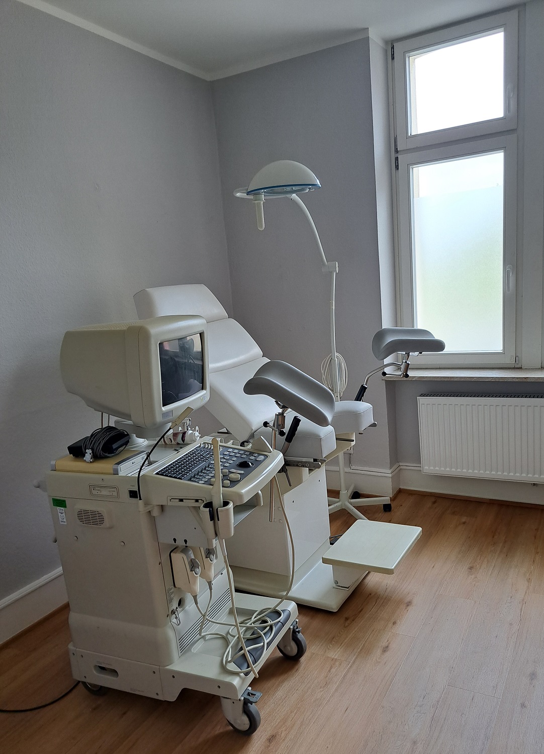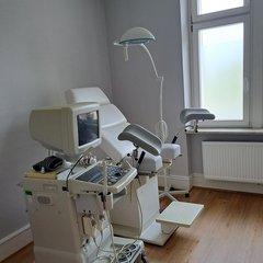- das mit Ultraschallgerät und Untersuchungsstuhl ausgestattete Sprechzimmer für gynäkologische Beratungen und Untersuchungen